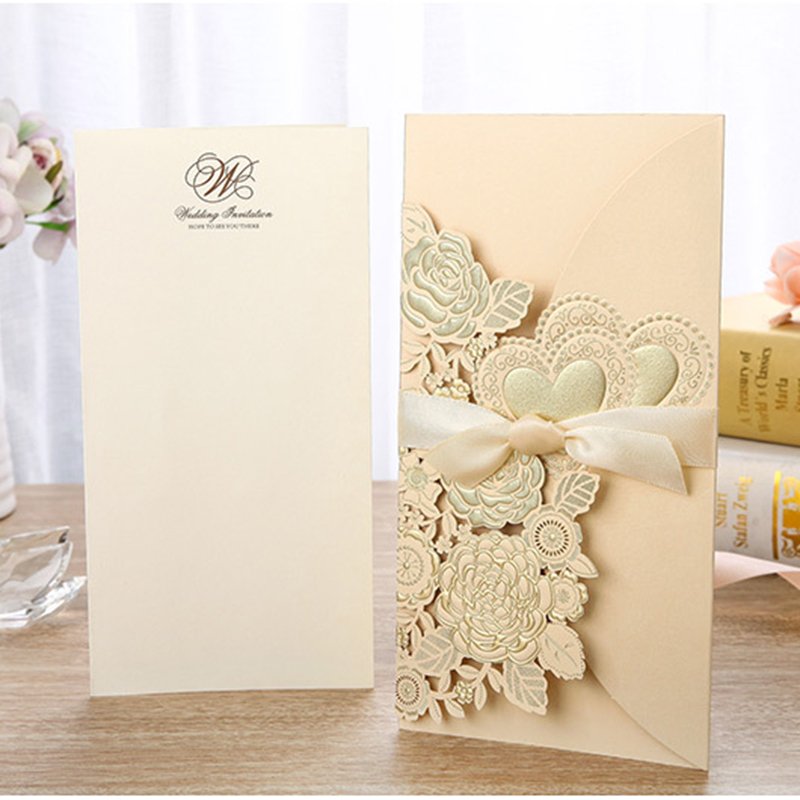 1pcs Love Heart Laser Cut Wedding Invitation Card Rose Flower Greeting Card Customize With Ribbon Party Favor Wedding DecorationFeatures: Invitation card is the most important part of an event like wedding, birthday party, business party,baby shower party, bridal party, graduation, engagement and so on; Special design invitation card can make your guests feel your sincerity, creation and originality; Choosing laser cut card, exquisite workmanship,add more warm and romantic atmosphere for your party. Tips: The inner card is blank. Specification: Material:High-grade Paper Color:White,Gold,Red,Blue Cover Card Size:Approx.11.3×21.6cm Inner Card Size:Approx.21×20.9cm Envelope Size:Approx.22.7×11.7cm (1mm=0.0393inch,1inch=2.54cm) Weight:25g/set Package Warms: 1pcs cover=1pcs laser cut pocket only,no inner card,no envelope,no sticker 1 cover and insert=1pcs laser cut pocket + 1pcs inner blank card,no envelope,no sticker 1set card=1pcs laser cut pocket + 1pcs inner blank card + 1pcs envelope + 1pcs sticker Note: 1,Size for manual measurement, there may be a 0 to 1 cm error, belongs to the normal phenomenon; 2,Due to the difference between different monitors, the picture may not reflect the actual color of the item. Thank you !