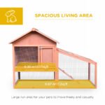 – Crafted from Solid fir wood with Non-hazardous Waterproof paint to ensure strength and protection for use all-year round – Two-level design of a large living space, side room and outdoor run area, giving your small pet flexibility to rest, relax and enjoy fresh air – Tilted asphalt roof, stops water build up and protects the Inside from water and UV damage Inside – easy access, with the opening roof of the side room, multiple doors with secure latches and Slide-out tray for cleaning – Non-slip ramp with middle wood strip provides easy and safe access in and out for your pet – perfect for rabbits, hamsters, guinea pigs and other small animals
