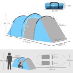 THREE MAN TENT: A great way to enjoy camping, hiking and festivals together, our tents for camping will give you a home to make memoires for the weekend.TWO ROOM DESIGN: Features a large sleeping area and a front porch and living area. Bedroom of the 3 man tent is protected by a door. Living area gives enough room for keeping bags and shoes etc. together and safe.TWO DOORS: One on the side and one at the front for easy access. Also the dome tents feature mesh vents to allow air gently in and out, keeping inside as cool as possible.FOUR INNER BAGS: Easy storage of the essentials. DIMENSIONS: 154H x 426L x 206Wcm. Folded: 17H x 63L x 16Wcm.GROUND STAKES AND CARRY BAG INCLUDED. ASSEMBLY REQUIRED. Waterproof Index: 2000mm.