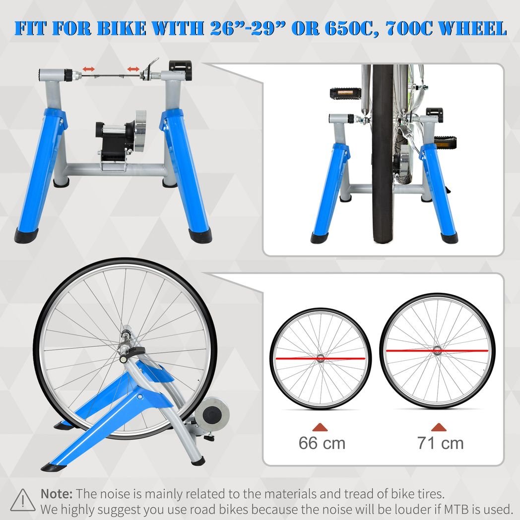 Safely & Efficently Trainging: With minimal damage to the knees and lower back, the bracket platform is safer, reduces fat and helps you become a more professional cyclist.8-Level Resistance Settings: The trainer includes a drive-by-wire device to directly change the resistance from your handlebars to meet your resistance and speed requirements.Stability & Sturdy: Constructed of strudy steel frame with a wide base and low stance for unshakable balance.Versatility:Fits for road or mountain bike with 650C,700C or 26″-29″ wheels.(Note: The noise is mainly related to the materials and tread of bike tires. We highly suggest you use road bikes because the noise will be louder if MTB is used.)Dimensions: Overall Dimension: 77L x 56W x 47.5H cm, Weight Capacity: 120 kg