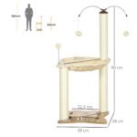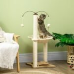 – “Cat Tree for Indoor Cats w/ Scratching Posts, Hammock, Toy Ball – Beige Pawhut” – Description: – Sisal wrapped scratching posts: Cats will dig their claws into the cat play tower, deterring them from using furniture. – Cat hammock: Covered in soft and comfortable plush, this cat tree tower provides a spot for cats to rest and observe their surroundings. – Sturdy material: Made from MDF, this cat tower is strong and stable, maintaining its shape as cats play, climb, and rest. – Hanging toy ball: Toys are placed in various locations, allowing cats to choose from. Keeps cats entertained and playful, making it a perfect cat activity center. – Dimensions: – Overall: 90H x 53.5L x 53.5Wcm – Cat hammock: 10H x 39cm – Suitable for cats under 5kg – Assembly required.