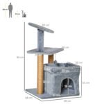 – multi-tier design: scratching posts, perch, scratching pad, house, bed and dangling ball