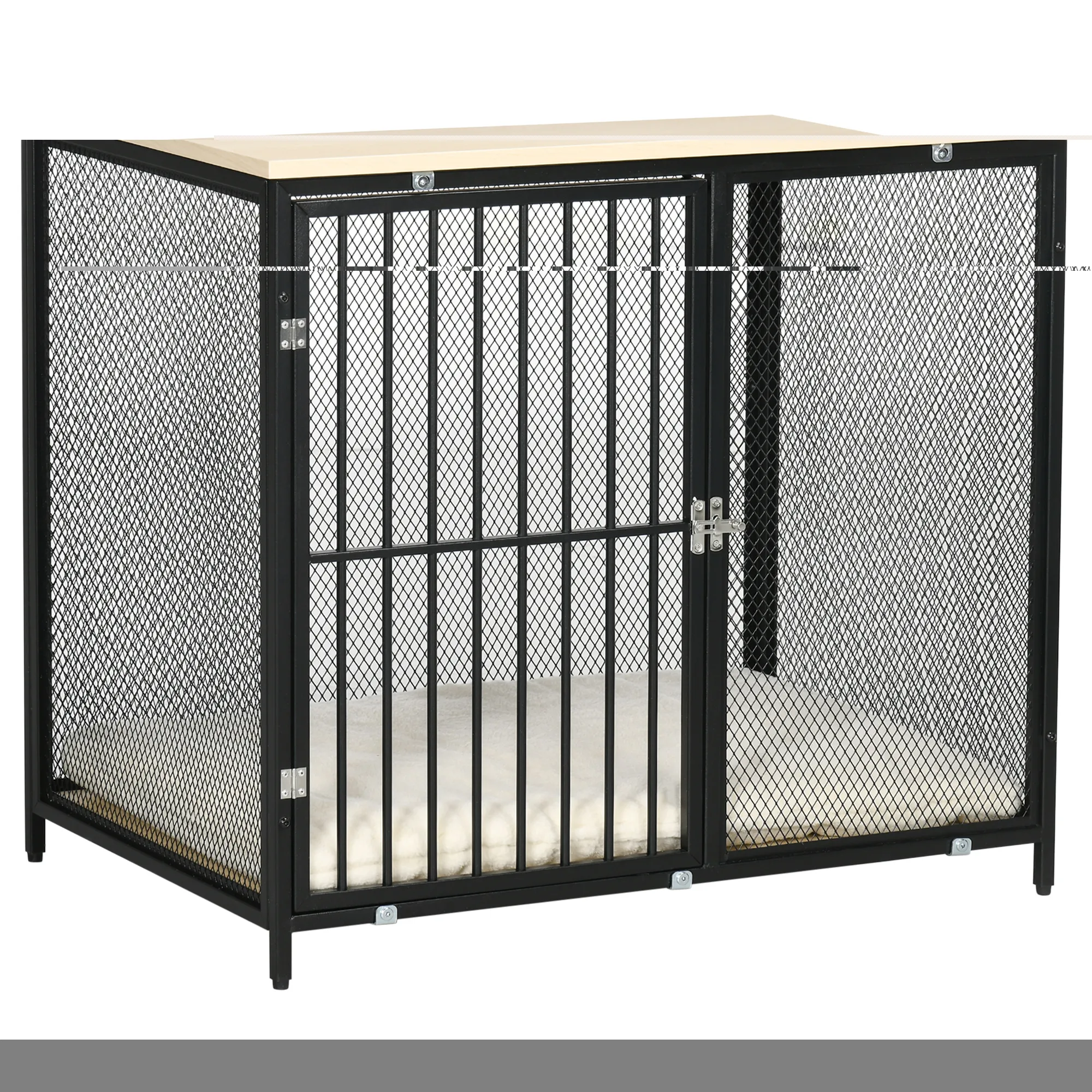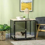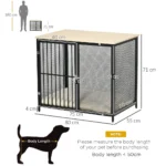 Multifunctional: Can be used as a dog crate with base and side table � Pets have a secure space to relax, whilst you have a spacious top to display your favourite pieces.Cushioned inside: Placed at the bottom, pets will be extra snug when inside this dog crate table. The cushion is machine washable – they always have a clean spot to relax in.Steel bars: Keeps the inside of this dog crate cage properly ventilated, ensuring pets are cosy when inside. Raised base: Stops dampness from seeping through.Dimensions: 71H x 80W x 55Dcm. Inside: 63H x 75W x 50Dcm.Suitable for medium dogs up to 20kg and 50cm in body length. Assembly required.