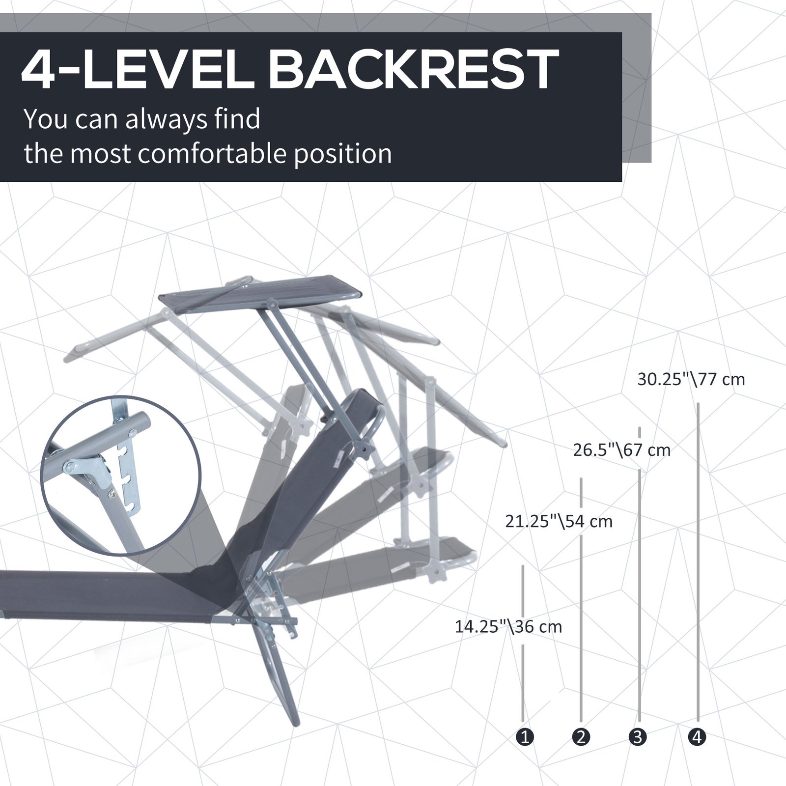 ADJUSTABLE BACKREST: The backrest is 4-level adjustable and can meet your different needs, like read a book or have a nap.