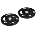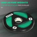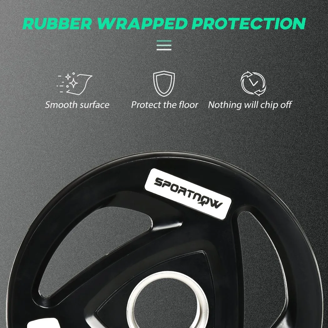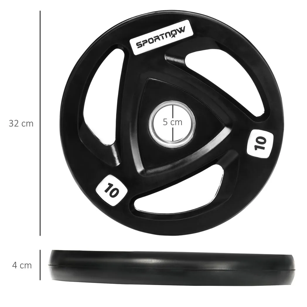 Set of two: Compact weight plates set, great for increasing strength and building muscle mass. Can be used at home, gym and outside.5cm centre hole: Attach these dumbbell weight plates to standard Olympic bars, curl bars, trap bars and squat bars, so you can switch up your exercise routine.Solid material: Made from durable steel, these free weights are wrapped in rubber for durability – it also protects your floor if accidently dropped.Three grip holes: Grab the weight plate from the centre, so you can exercise without a barbell � perfect for side lateral raises, plate rotations, chest presses and more.Dimensions: ?32 x 4Dcm. Weight: 10kg per plate.