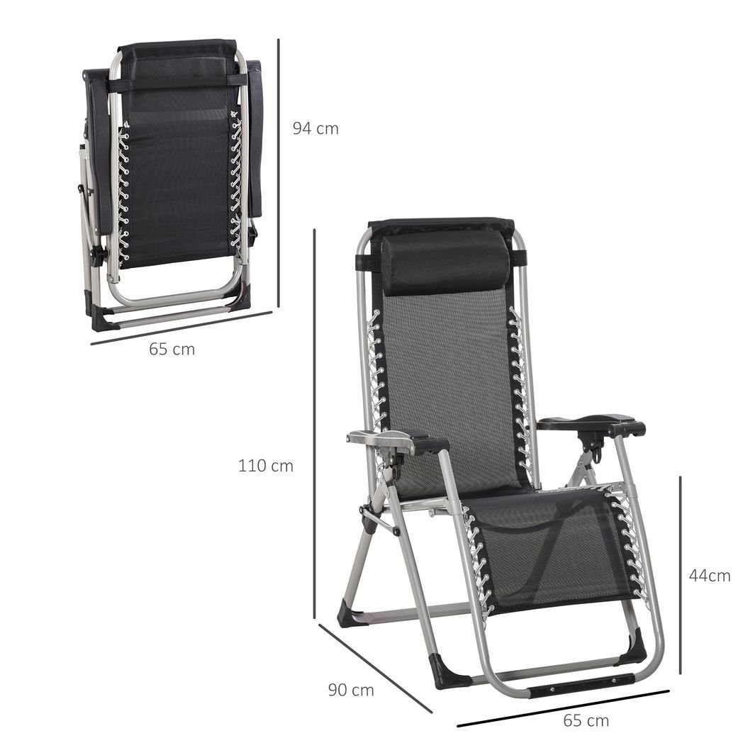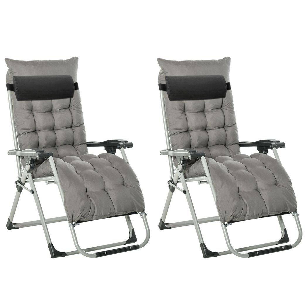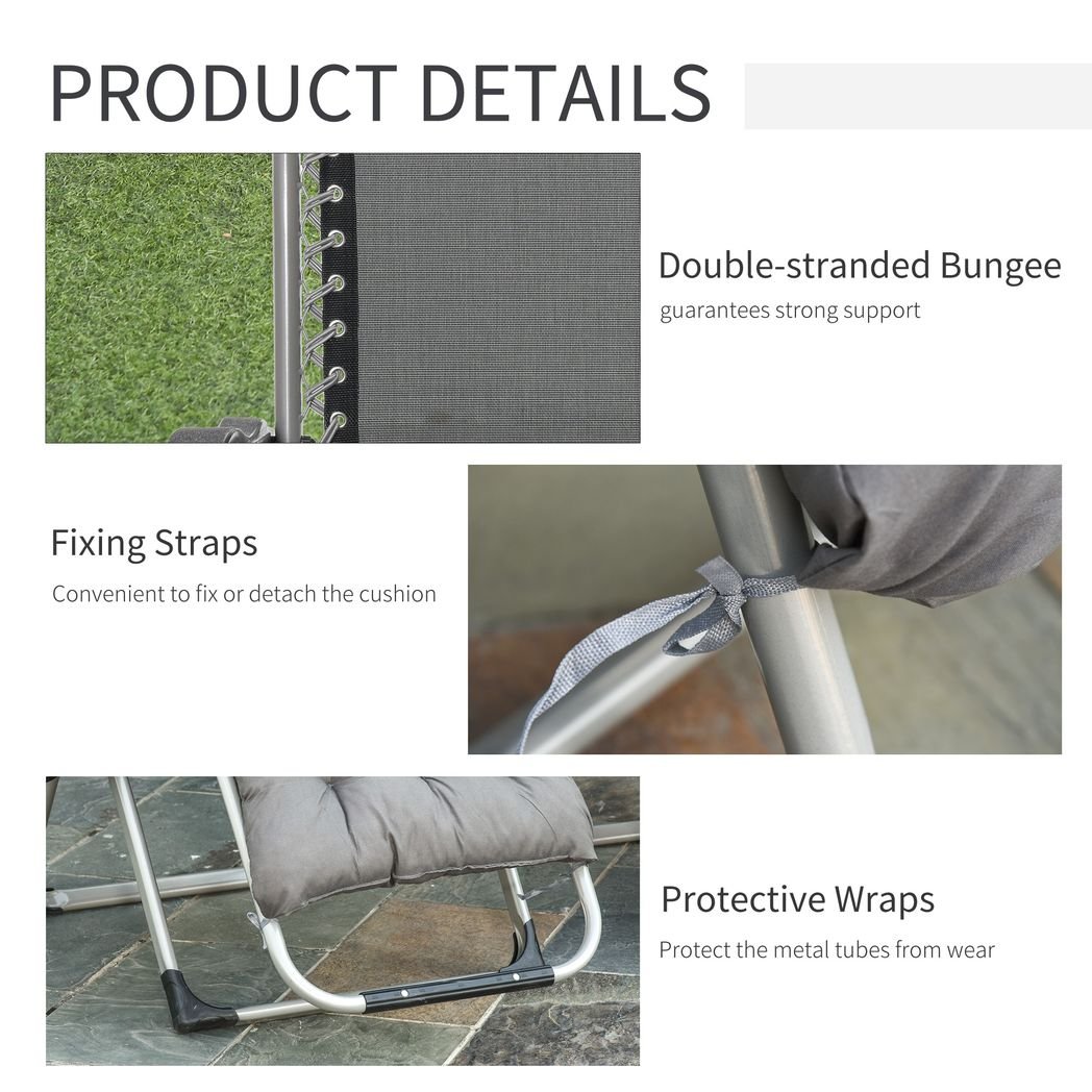 Outsunny 2 PCS Reclining Zero Gravity Chair Folding Lounger Cushion Dark Grey