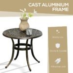 Outsunny 60cm Round Hollow Top Design Side Table with Cast Aluminum Frame