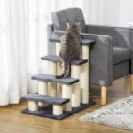SOLID CONSTRUCTION: Particle board construction with E1 certification, covered with warm and soft faux fur, stable and durable  SISAL SCRATCHING POST: Each scratch post wrapped with wear resistant sisal ropes, great for your cats to sharpen their claws and protect your furniture from damaging  ALL-IN-ONE CENTER: Varying platforms for all manner of cat activity to sleep, exercise, relax, scratch and play. Gives your pet independence to access couches, ledges and high space  OPTIMAL CHOICE: Optimal for older or disabled animals suffering from arthritis, pain, hip dysplasia, help small, older, recovering animals reach higher spots  PRODUCT DIMENSION: Overall Size: 60L x 40.5W x 59H cm. Assembly Required.