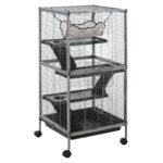 – Ideal for small animals, such as ferrets and chinchillas – a hammock included for added comfort – Each platform has round holes to connect the ramps – multiple doors for easy access – features a Bottom tray to contain litter, which is Removable for easy cleaning – three ramp and four platforms, providing a Spacious cage for pets to roam – spaced Bars keeps their area properly ventilated – rolling wheels at the Bottom for easy movement – Two wheels can be locked to keep the cage in place – Assembly required