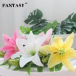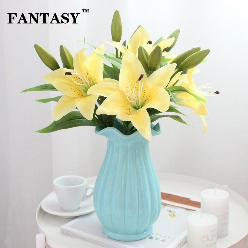 FANTAST Yellow Lilies Artificial Flowers Real Touch White Flower Decoration Wedding